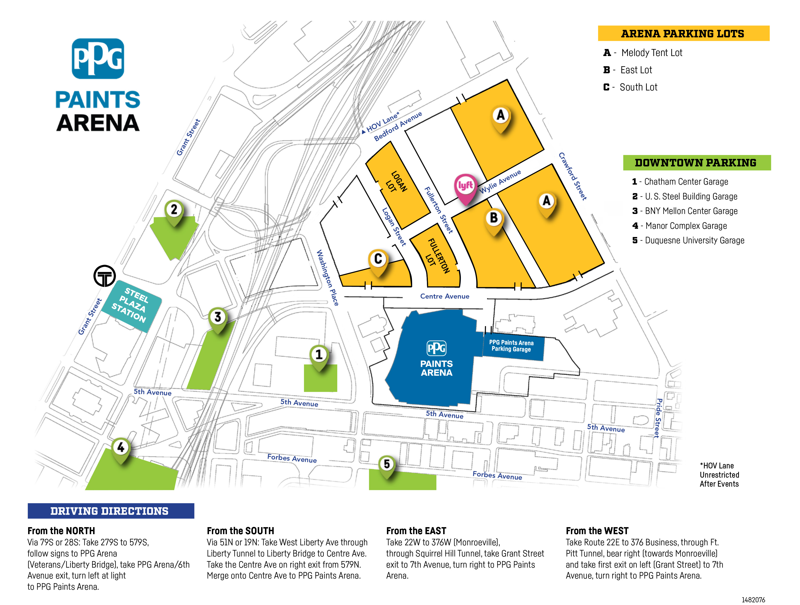 In addition to the above parking options, the U.S. Steel Plaza T Station (Sixth Avenue at Ross Street) is just blocks away from the EQT Gate and the Highmark Gate. There is no fare collection in the Steel Plaza Station. Passengers embarking at Steel Plaza may travel for free to any of the other stations in the free fare zone - First Avenue, Wood Street, Gateway Center, North Side, and Allegheny. Outbound passengers pay fares when disembarking.